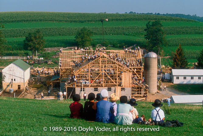 Mt. Hope, Holmes Co. Ohio Women and girls watching barn raising