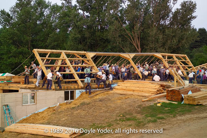 Lakeville, Holmes Co. Ohio Barn Raising with addition on to existing barn