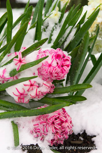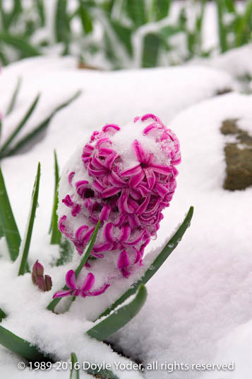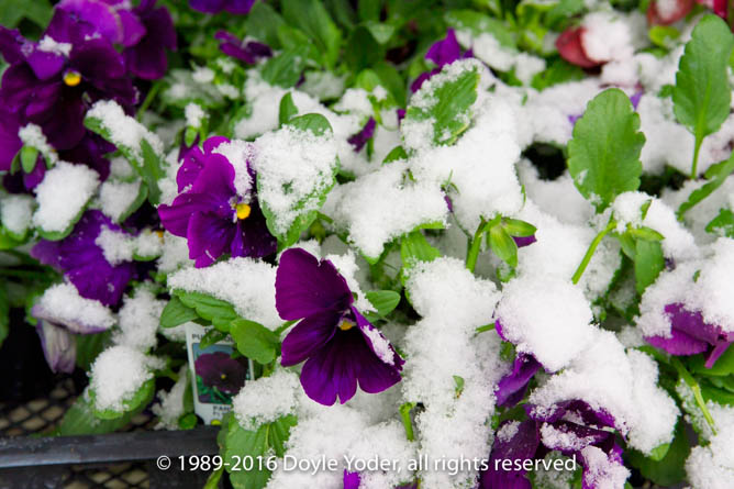 Mt Hope, Holmes Co. Ohio Spring snow with flowers covered with snow
