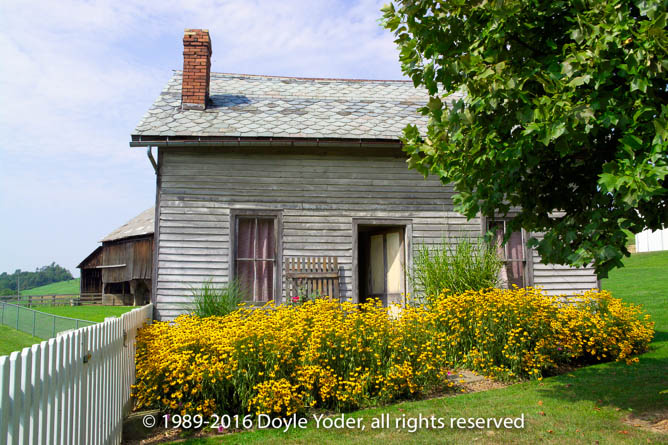 Becks Mills, Holmes Co. Ohio Flower garden in front of old house