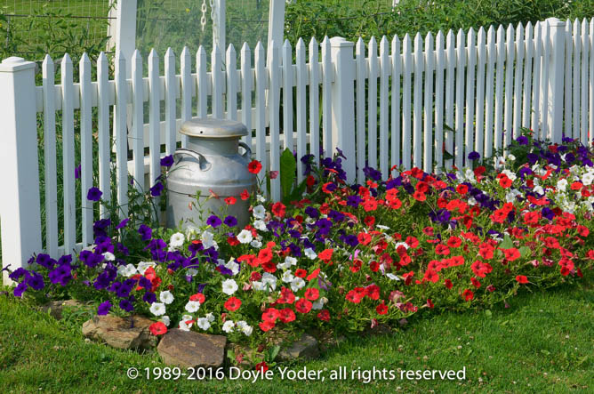 Ohio - Gardens - Flowers Flowers in garden with Milkcan and picket fence