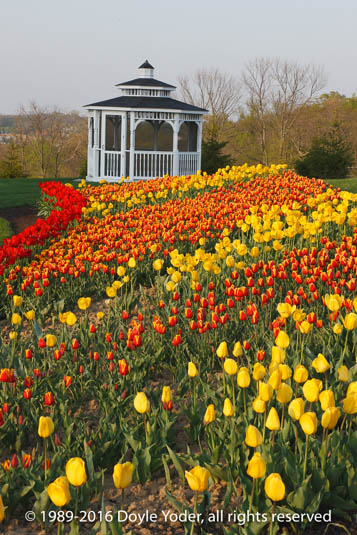 Ohio - Gardens - Flowers Lots of tulips in flower garden with gazebo behind