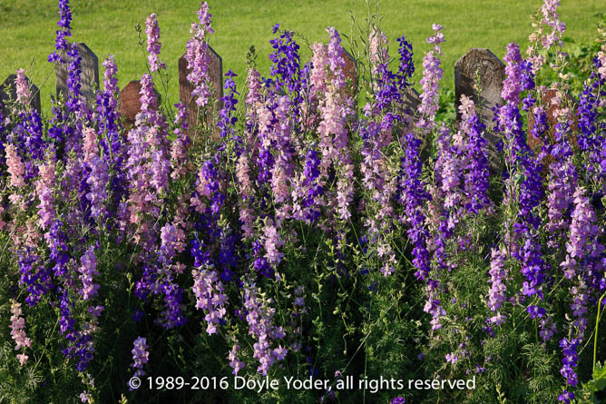 Ohio - Gardens - Flowers Flowers in grass with Church House at cemetery