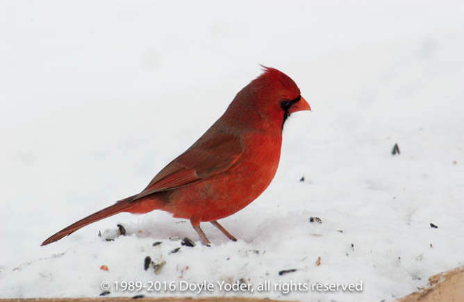 Becks Mills, Ohio - Birds Male Cardinal feeding on ground in snow