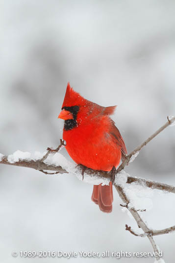 Becks Mills, Ohio - Birds Cardinal sitting in tree in snow